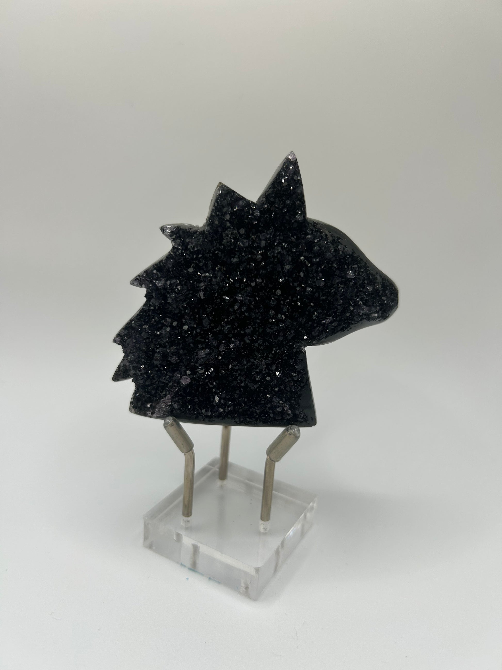 This striking black quartz crystal, expertly carved into a whimsical unicorn form, combines natural mineral beauty with symbolic meaning. Black quartz is valued in crystal work for its grounding properties and protective energy. The unicorn shape adds a touch of magic and imagination, making it an ideal decorative piece for collectors, meditation practitioners, or anyone drawn to meaningful gemstones. Each stone's unique patterns and natural variations ensure no two pieces are identical. Perfect for display on shelves, desks, or altars, this piece serves as both an aesthetic accent and a tangible connection to earth's natural wonders.