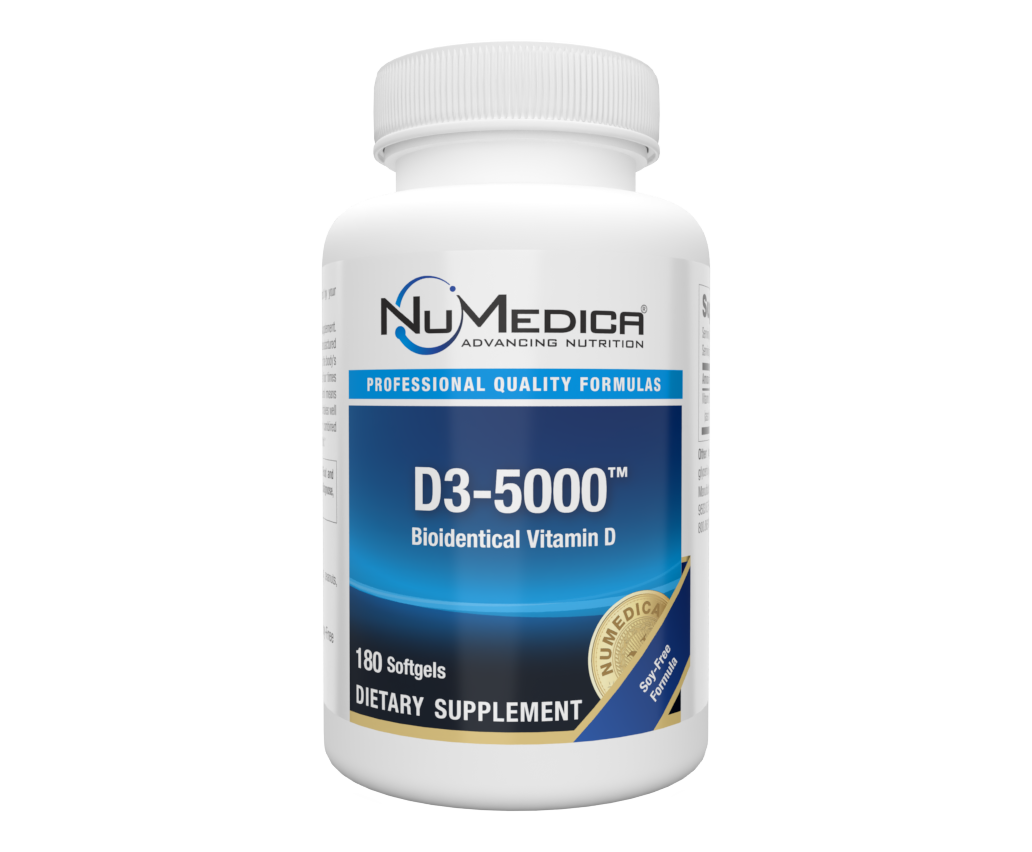 D3-5000™ is a natural, soy-free, bioidentical vitamin D supplement. Vitamin D, considered both a hormone and a vitamin, is manufactured in response to skin's exposure to sunlight and is essential to the body’s absorption of calcium. Natural vitamin D3 (cholecalciferol) is four times more potent than synthetic vitamin D2. In Latin, calciferol means “calcium carrier.” Additionally, vitamin D has been the subject of numerous studies for its effect on the immune system by promoting phagocytosis and immunomodulatory functions.