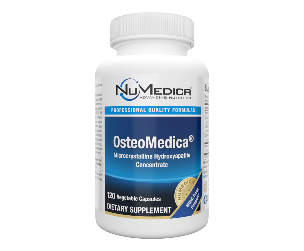 OsteoMedica® provides MCHC (Microcrystalline Hydroxyapatite Concentrate) from New Zealand open-range, pasture-fed cattle raised in pesticide-free environments. Cold-processing technology preserves the delicate organic factors that heat and solvents destroy. The MCHC in this formula is a full-spectrum, highly absorbable crystalline compound composed of calcium, phosphorus, organic factors, collagen (type 1) and an active protein matrix, along with its naturally occurring bone growth factors.* Thirty years of research has documented its benefit in optimal bone health.* OsteoMedica® also contains magnesium and vitamin D3 to provide a comprehensive bone support formula.* Vitamin D3 stimulates intestinal calcium absorption and helps regulate calcium and phosphorus homeostasis in the body.*