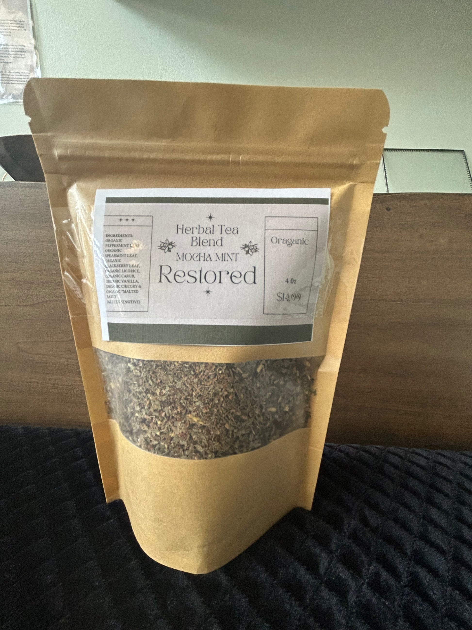 Organic: peppermint leaf, spearmint leaf, blackberry leaf, licorice, carob, vanilla, chicory, *malted barley